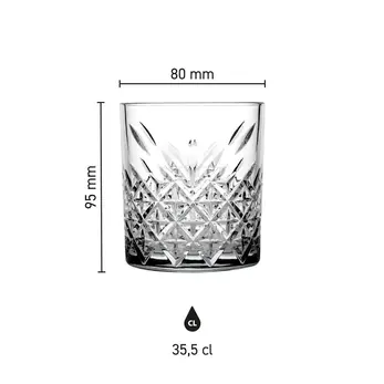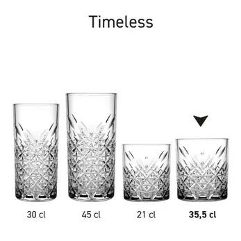 Het Timeless Whiskyglas 35,5 cl van het bekende merk Pasabahce is dé perfecte keuze voor liefhebbers van stijl, kwaliteit en tijdloos design. Met zijn royale inhoud is dit glas ideaal voor whisky, maar ook uitstekend te gebruiken als waterglas of tumbler. De Timeless serie kenmerkt zich door haar verfijnde glasbewerkingen en de dikke, stevige bodem, wat het glas een robuust en luxueus karakter geeft.